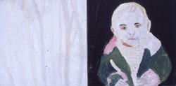 Christening Gown | By regulating the paintings by time I am reminding myself how unregulatable time and memories are. Humans constantly impose a narrative onto the nonsensical string of their memories. In some way I too offer the viewer the chance to create stories out of the different combinations of painting to make sense of these disparate images. I want the paintings to look frozen, as though I have captured them in an inventory/museum of different artefacts from different situations grouped together in an attempt to document a person's memories. The paintings are mostly in oils on identically sized (6″ x 6″) gesso tiles. The tiles will be placed next to one another forming a pattern when put on the wall. I have in the past taken photographs of houses prior to clearance, and I would like the paintings when grouped together to look like the walls of an empty house, breathing out aspects of the owner's life. |