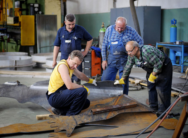 NEW YORK, October 28, 2009—The Museum of Modern Art presents Projects 91: Artur Zmijewski, featuring the premiere of the artist’s newest film Sculpture Plein-air. Swiecie 2009 (2009) shown in a continuous roughly 23-minute loop, in the Museum’s Contemporary Galleries from October 28, 2009, through February 1, 2010. For the film, Zmijewski (Polish, b. 1966)—whose work investigates social norms by inventing or staging unusual scenarios for his subjects and documenting their reactions—invited seven artists from different parts of Poland to collaborate with steel workers in the city of Swiecie. Using facilities, equipment, and materials provided by a company that occupies the grounds of a former cardboard factory, they created public sculptures that were installed around the city. Projects 91 is organized by Connie Butler, The Robert Lehman Foundation Chief Curator of Drawings, The Museum of Modern Art, and is part of MoMA’s ongoing Elaine Dannheisser Projects Series.