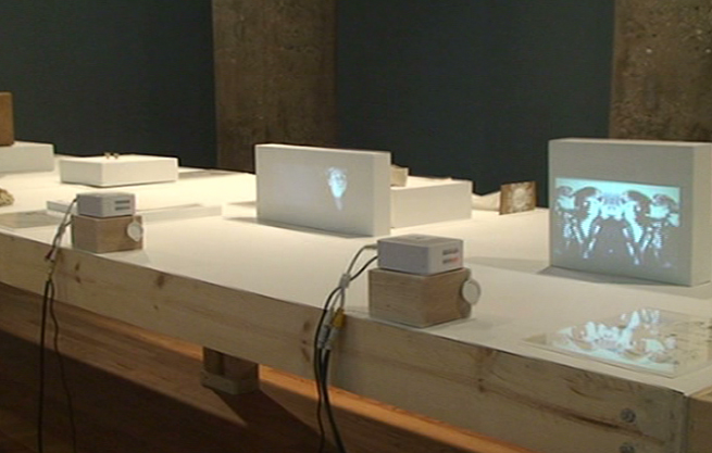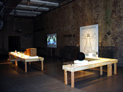 Participating in a legal process allows us to draw the flesh in a deeply personal way. Moreover, it allows us to persevere toward the complexity of a shared world and the intensity of a shared past. For us, the double body is an intentional way to suspend the ever-present, authoritative �I� and to allow the �we� to find form. This leap of faith molds our collaboration and allows us to explore the non-complicit nature of the collaborative body. IMAGES Top to bottom: Drawing and Being Drawn (2007), MASS MoCA, North Adams | Expectations: How does one become what one is? (2004) also followed in this legal vein. Presented at the Museum of Contemporary Art in Chicago, this multi-media installation project collaborated with an estate attorney to acquire a legal last will and testament for two selves living in one body. Comprised of videos and bequeathed objects, this installation explored the task of defending oneself after death. Specifically created for The Drawing Center, Witness to a Social Drawing (2005) collaborated with the Illinois Office of Secretary of State to legally prepare a peace accord for a doubled body. Comprised of notarized documents, sculptural artifacts, and video recordings, this installation explored the potency of contracts and self-preservation. Recently created for MASS MoCA, Drawing and Being Drawn (2007-2008) collaborated with science, law, and art to legally patent a life-form for a doubled body. Comprised of patent drawings, sculptural prototypes, and video recordings, this multimedia installation not only explored the moral and political implications of recent advances in biotechnology, but it also investigated the act of invention and examined the limitations that exist within intellectual property.