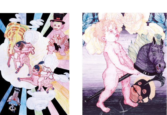 Pigmentmarker + collage on paper, 62 x 43.2 cms