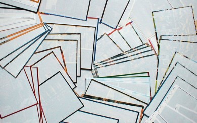 In post-card (image1-2), 200-tourist postcards of Buenos Aires were transported to Maastricht, The Netherlands, to be re-printed: a silkscreen white layer slightly covering the photograph created a new surface to be reused. The addresses were 123 Argentineans, some still living in Buenos Aires, some of them gone, who decided to take part in the project.