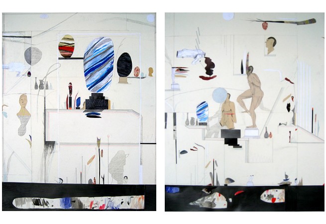 In the project space, Joseph Hart will present a series of collage-based drawings. Hart’s wistful compositions generated with pencil, pen and paint, are reminiscent of Baroque landscapes and nod to other art historical works. For Priority Index, Hart has taken his cue from several trips to the Metropolitan Museum of Art, where display cases, pedestals, frames, mantels, and other exhibition fixtures serve as anchors within the composition as well as metaphors for value, triage and importance. He further investigates belief and value systems, and how these ideologies relate to faith, human capacity, and mythology.