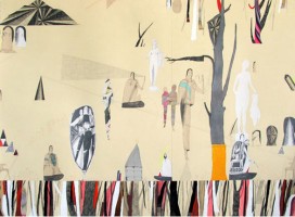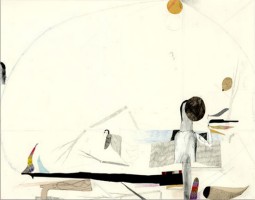 collaged paper and graphite on paper, 28 x 38″
