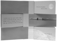 Another series of work explores our cultural experience of the development of technology through first person accounts and artifacts. It is a living thing documents interviews with software engineers regarding what they find beautiful or compelling about well-written software and the act of programming. Quotes are accurately printed and “punched” on giant replicas of computer cards. Two books encompass the history of manned flight. Secrets of Flight combines photographs and text from the Wright Brothers’ own documentation of the first manned, powered flight. Destination Moon contrasts John F. Kennedy's “Man on the Moon by the end of the decade” speech with a pop song about a couple’s romantic trip to the moon.