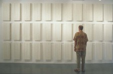 chronicle both the milestones and the daily routine in the 90-year history of an immigrant farming family. Each piece requires a heightened level of engagement – leafing through a book whose pages are interleaved like grains on a stalk of wheat; winding forward and back through a movie-like, time traveling scroll; walking through rows of an installation that becomes a walk around the boundaries of