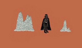 Whitmarsh�s choice of medium bring to mind the Arts and Crafts movement of the 1970�s while other elements in her work relate Minimalism and Pop Art. Since her cast of characters is sewn over flat backgrounds, the pieces resemble color field paintings with little specks of color. A closer look reveals a tiny cigarette held by a Yeti or a golden necklace worn by an Elf. Some pieces include more familiar references: The band Kiss or Darth Vader can be found inhabiting a monochrome� Other pieces include art historical inserts: A Yeti next to a Franz Kline painting, King Kong staring at a Robert Indiana sculpture and so on. | Megan Whitmarsh holds an MFA from The University of New Orleans, New Orleans, Louisiana and a BFA in painting from Kansas City Art Institute, Kansas City, Missouri. She makes a comic �Snow Monkeys� and various merchandise under the moniker �Tiny Industries�. Her work has been exhibited at Gavin Brown Enterprise, Andrew Kreps, Clementine and Lyonsweir in New York; Parlour Projects, Brooklyn; sixspace and Millicent Gallery in Los Angeles; Deluxe Projects and the Texas Ballroom in Chicago; Jody Monroe and The General Store in Milwaukee and at Branch gallery, Carrboro, NC IMAGES : From top : ORANGE CAPE, 2005. Embroidery thread on polished cotton. 8�X8�. DARTH VADER, 2005. Embroidery thread on polished cotton. 3�X5�. NICE CAPE, 2005. Embroidery thread on polished cotton. 5�X7�