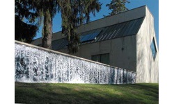 | This was then printed by a commercial billboard printer and installed on the floor of the Palmovka Synagogue, a spot heavily affected by the floods. As you stepped onto the surface of the water you were set afloat in an irrational space much as you are in a Baroque church. Here of course there were other implications. Certainly the work reminded the viewers who treaded on the image of water of both the human and natural power of destruction, of their bodies, and perhaps, in this context, even of mortality itself. Much the same sense of the somatic peril was elicited in two site-specific installation pieces created for Black & White Gallery in New York. (Wave, 2005 and Fall, 2007.) Here, the images�which were installed both indoors and out�threatened to inundate the viewer with a cataract of falling water. The 200-foot long waterfall installed on the low retaining wall (Rising Water/Falling Water, 2006) in front of the Katonah Museum of Art had other implications . The museum is surrounded by reservoirs that supply the water to New York City. All this water is, of course, held back by dams that are�according to the authorities�prime targets for terrorism. Nature is lovely to look at but much harder to control than we would like to think. | |||||||||