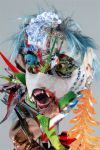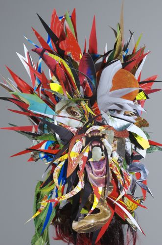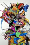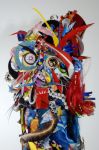 | Pepe Mar�s technique is complex, bizarre, and vicious, infusing his works with color, glamour, and fashion. His collage monsters are like mannequins�slowly �painted,� coiffed, dressed, undressed, beautified, colorized, and �monstrosized�. He incorporates the detritus of everyday consumer life into his work. The second force of silence, submission, and masquerading is evidenced in all the monsters� faces, depicting a sensibility of death. Those quiet, introspective eyes are a part of faces that are otherwise about to explode or swallow us for lunch with their sharp teeth, open mouths, and arms in corrupted and vicious movements toward the spectator. These haunting faces speak silent volumes of the dynamic of chosen and/or inflicted silence on entire populations, which like these sculptures, eventually explode into a loud Gemeinschaft, where the common relationship between people whether of feelings, kinship, or membership becomes spoken, debated, and demanded. In the same way, Mar�s monsters speak, debate, and demand our attention. They seem painfully aware that silence shall equal death for them, and therefore constantly remain in flux of form, size, color, and motion. Mar�s work points to a profound artifice. The drama is present throughout the work. By delighting and frightening at the same time, the works cut away at basic modes of thinking about beauty and monstrosity. | |||||||