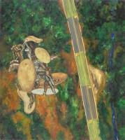 | | | My work includes drawings, paintings and sculpture involving, in one way or another, plastic figures within the landscape. These figures or clusters of figures are part of imaginary � gamescapes,� where the characters are incorporated into a game environment where all can be subject to chance, luck, and competition. The idea that the hero representations of the Western World can and are produced by the millions with cheap plastic, most likely in China or Taiwan, is something I find quite fascinating. |