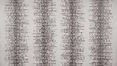 The pieces that make up my most recent series, collectively titled the Stone Series, are hybrids in the sense that they combine printmaking techniques with drawing and painting (and occasionally sculpture). Using Mylar templates, I build up layers of patterns and configurations to form dense fields of shapes that suggest both mechanical and organic referents. Conceptually, the work is very much influenced by digital culture and the various questions about how our immersion in technology is affecting our attitudes toward--and experiences of--nature (including our selves). By merging apparent antitheses such as mechanical and organic, digital and analog, and randomness and order, I hope to draw the viewer into a contemplative inner space where the presence of conceptual ambiguity leads to a richness of meaning not accessible to ordinary awareness.