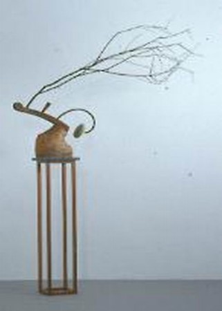 | | … Like traditional round sculptures, works of such a nature usually concentrate on appearance, changes in the ‘characteristics of every aspect’ and the transformation of 3-D light and shadow effects. As a result these sculptures were placed in the center of the show, enabling viewers to scrutinize all round so that all messages conveyed would be received for interpretation and evaluations of the work. In term of aesthetic styling one can easily recognize the ‘down to earth’ character inherent to these works because the elements of them show the closeness to worldly things. To viewers, segments of wooden furniture, stones, metal wires used in industry and man-made wooden blocks may be no more than common objects with a different touch. Through Tsai Ken’s hands however, and his innovation, they have metamorphosed into elegant forms. These works surely display the artist’s habit of cherishing things and objects. It also shows his attempt to integrate life with art. If his initial strategy is to integrate art with life, the key point seems not how he should combine these ordinary objects but how can he rectify the attitude of isolated pride which has for so long prevailed in art and bring to it a human touch? |
