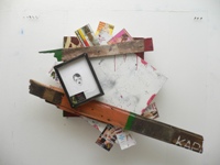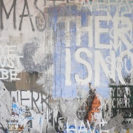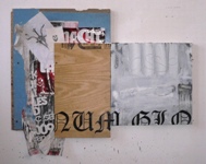 Ellis' use of text is influenced by the everyday experience of seeing graffiti, shop signs, road markings and builder�s notations in cities globally. Employing techniques from broad brushwork to frenzied scoring and instinctive spray painting to highly controlled sign-writing, Ellis uses text as a direct expressive vehicle. By appropriating misspellings and incorrect syntax from street graffiti and personally significant lines from poetry; or repeatedly using individual words that have particular resonance for the artist, Ellis seeks to subvert language�s common usage, creating instead ambiguities and new possibilities. Combined these strategies serve to recall the worn and decrepit surfaces of the urban environment whilst engaging the audience physically and cognitively. Each surface contains its own private history and signifies the flux of both instantaneous and prolonged experience, representing constant actions upon the environment. Ellis' creation of subjective material fields recall this whilst corresponding to his own actions. Acting as mediator, Ellis intends for the work to create new and uncertain relationships between artist, material, language and audience.