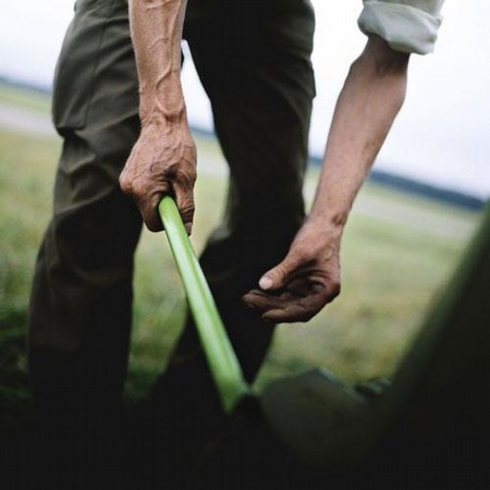 Farmer threshing grass at an abandoned airport used by CIA for transport of clandestine "high value"terrorism suspects. Szymany, Poland, July 2009. From Polonia and Other Fables, 2009. � Allan Sekula, Courtesy Galerie Michel Rein, Paris | |||