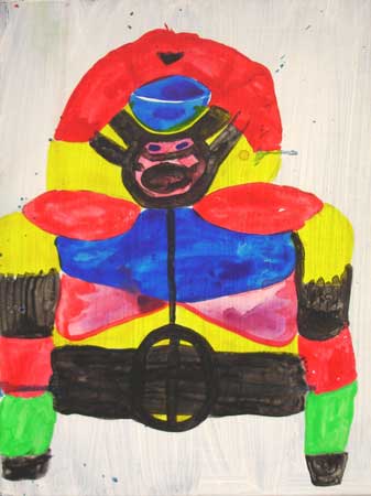 | New Work from current Royal College of Art Students. Degenerates aims to bring together three artists who have in common a desire to explore the clumsy aesthetic and Abstract tendencies within their work. The exhibition revolves around a question of why a practice follows an apparent system of devaluation or deconstruction. What can be interpreted as an awkward aesthetic consistently returns the work to the process of its creation. Perhaps what is perceived as a type of failure within the process becomes the most celebrated and accomplished part of the work. Ellie Stanford uses systems of logic, order and value, such as composition, symmetry and perspective and attempts to undermine them so that the paintings operate through a type of representational default. Loose and subjective narratives reoccur throughout the work that often alludes to spectacles or quasi-spiritual scenes. These pull the paintings away from their formal tendencies towards Geometric Abstraction and place them into a fictional real space. The work circles around a central theme of belief in painting which often sits on a thin line between futility and devotion. Ross Taylor relies on his immediate surroundings and daily observations to create solutions to help him understand his �existence�. By re-writing his own visual alphabet or index, he creates characters and voices within the scenes he paints. Mysticising places coupled with an intuitive and �menopausal� mindset, he feeds into a place made up of memory and triggers. In Degenerates his work observes current social trends and interprets a world around him as a place of imagined and symbolic commercially-driven scenarios. Jack Vickridge's work consists of material explorations between 2 and 3 dimensions. Combinations of materials such as cement, felt pen, soil and watercolour are used to describe the visual and physical world broken down into colour, surface and matter. This is reinterpreted into fragments of an imagined internal world. The objects and drawings create both an interpretive ambiguity and a possibility of illusion. Familiarity is suggested but does not settle comfortably into a known representation in the viewer's imagination. | |||