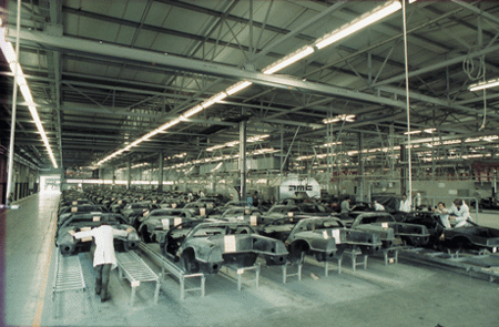 | Duncan Campbell 13 November � 20 December 2009 Preview Thursday 12 November, 6.30 � 8.30pm For his first major solo public exhibition in London, Chisenhale Gallery premieres a new film by Glasgow-based artist Duncan Campbell, co-commissioned by Chisenhale Gallery; Film and Video Umbrella; Tramway, Glasgow and The Model, Sligo. Make it new John (2009) tells the story of the DeLorean car, its creator John DeLorean and the workers of the Belfast-based car plant who built it. The film deftly contrasts the DeLorean dream with its spectacular downfall during a critical period in Northern Ireland�s history, and the canonisation of the car � the DMC12 � as a symbol of the American myth of mobility. The son of an immigrant Romanian foundry worker, John DeLorean�s natural talent for engineering took him to the top of Chevrolet, General Motors� most important division. Leaving this behind he persuaded the British Government to back his new venture � building a factory in Dunmurry in Belfast to produce a new sports car. Almost immediately beset by financial difficulties and allegations of embezzlement, DeLorean�s attempts to keep the factory open became increasingly desperate and corrupt, eventually leading to his arrest by the FBI. The factory - which employed 2000 workers - closed in 1982, having produced just over 9000 cars. As with the earlier works such as Bernadette (2008) and Falls Burns Malone Fiddles (2003), in Make it new John Campbell fuses a documentary aesthetic with fictive moments, using existing archive news and documentary footage from the 1980s as well as new 16mm footage which imagines conversations between DeLorean factory workers. Campbell questions the documentary genre and reflects here on broader existential themes and narrative drives. Make it new John lasts approximately 50 minutes and will be screened on the hour during gallery opening times. Duncan Campbell lives and works in Glasgow. In 2008 Campbell was the recipient of the Baloise Art Prize and a Paul Hamlyn Foundation Award for Artists. Recent solo exhibitions include Kunstverein Munich; Ludlow38, New York and The Scottish National Gallery of Modern Art (all 2009). His work has also been featured in Art Now Lightbox, Tate Britain, London (2006) and Manifesta 5, European Biennial of Contemporary Art, San Sebastian (2004). Talks & Events Saturday 28 November 2pm Isobel Harbison, Exhibitions Organiser, Hayward Touring leads a tour of the exhibition. Thursday 3 December, 7pm Richard Kirkland, Professor of Irish literature and culture at King�s College London, will discuss the rise and fall of the DeLorean project in the context of Northern Ireland in the 1980s. Sunday 13 December, 4pm Duncan Campbell discusses his new film and recent work with Mark Godfrey, Curator, Tate Modern. | ||||