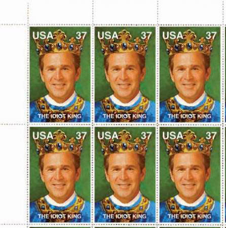 David Krueger Idiot King [detail], 2001 - Sheet of perforated, laser printed stamps, 8 �� x 11� | |||