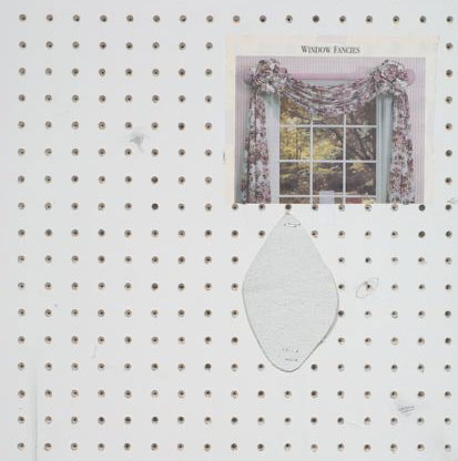 AMANDA ROSS-HO, Untitled Proximity Still Life (Window Fancies), 2008 Found images, latex, acrylic, spray paint, graphite, staples, linen tape and canvas on hand-drilled Sheetrock, 96 x 48 inches framed | |||