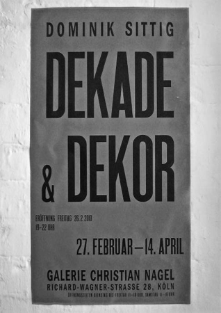 | Christian Nagel K�ln: DOMINIK SITTIG 'Dekade & Dekor' - 27 Feb 2010 to 14 Apr 2010 Current Exhibition | ||||
