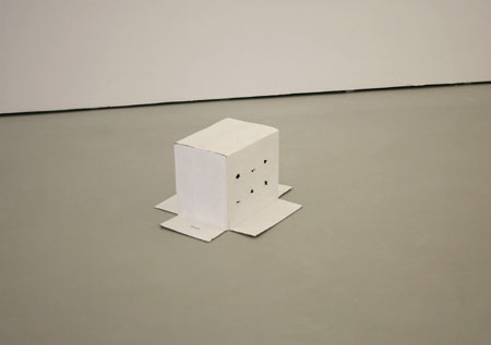 | Lu�s Paulo Costa November 27th, 2008 to January 3rd, 2009 Opening: Thursday, November 27th at 22:00 Welcome | One Time Presentation - 22:00 � 22.30 Cristina Guerra Contemporary Art has the pleasure to present its third Lu�s Paulo Costa solo exhibition. In this show, Lu�s Paulo Costadisplays four new pieces, which stand between purposeful banality and theatrical staging. Banality, free from the depreciative meaning the word frequently acquires, is used here as a strategy of extreme realism and simultaneous annulation of the object, which the artist has been recently employing in his work. In the new set of pieces presented here, the artist�s aesthetic and conceptual program remains, though his production is now ruled by a new paradigm: painting is being slowly relinquished in favour of the sculptural dimension of the objects, and especially of their enveloping space. The exhibited pieces explore such concepts as the simulacrum, anticipation, disappointment, inaccessibility and invisibility. In Welcome, an action that will take place at the gallery�s entrance for just 30 minutes (from 22h00 to 22h30) and only on the opening night, a group of photographers, hired by the artist, will pop their flashes at all the people entering the space. Bathed in a glow of lights, visitors anticipate (given the media hubbub) a major event, or maybe the presence of some celebrity. Inside the gallery, all they see is a regular opening night. In the gallery�s first room, we find Constru��o (quase pronto). Lu�s Paulo Costa has built a wall that makes part of the gallery space inaccessible. The way it was built shows clearly that the spectators have been left on the outside of the construction. There are sounds of people setting up an exhibition: electric saws, power drills, hammers. Perhaps the event anticipated at the entrance is happening inside this space. Once again, we are denied access. Boas inten�_es is the piece that is most reminiscent of Lu�s Paulo Costa's previous works. A cardboard box � laid open on the ground, with holes on its sides � leads us to believe that there is something inside it. The silence reigning in the piece once again thwarts our expectations. An inquisitive gaze will discover that everything in the box is painted. This is a reconstruction of the object itself, which acquires, through the action of painting, a new identity. Finally, It can be anything (with light) occupies the whole of the lower gallery. It consists of a wall, painted in Chroma green, and a lighting structure, like the ones used in theatre. Chroma green is the colour used to paint a backdrop for film. The actors perform in front of that backdrop, which will be later replaced by CGI scenery. This wall is used as a space for contemplation, as a place of potency and projection. | ||||