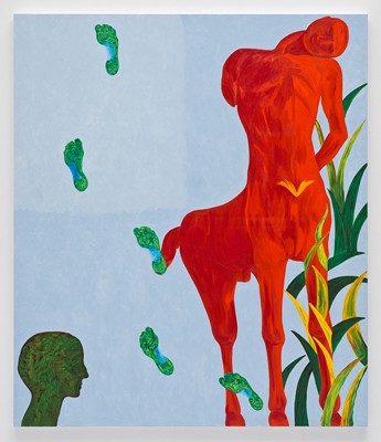 | Thomas Lawson In the Shadow of the Beast September 8 – October 20, 2012 Opening reception: Saturday, September 8, 6:00–9:00pm David Kordansky Gallery is very pleased to announce In the Shadow of the Beast, an exhibition of new paintings by Thomas Lawson. Consisting of medium- and large- scale canvases, the show presents the latest developments in Lawson's on-going investigation of allegory and the human figure. The exhibition will open on September 8 and run through October 20, 2012. An opening reception will be held on Saturday, September 8 from 6:00 until 9:00pm. For over thirty years, Lawson has explored the ways in which figurative representation allows for––and sometimes disrupts––the transmission of meaning. He has shown how images of the human form in art invariably take on a host of allegorical possibilities: the immediate, phenomenological pose of the viewer's own body before the artwork; the manipulated presence of the human figure in contemporary media outside of the visual arts; and the long, historically-oriented 'literature' of representations that has, over the centuries, become the foundation for understanding how subjects relate to their physical, social, and philosophical environments. The references in Lawson's work are drawn from the entire history of visual culture. In the Shadow of the Beast presents new paintings that borrow tropes and forms from pre-historic cave art, classical statuary, nineteenth century figure studies, forgotten modernist sculpture, and contemporary newspapers. Over intensely colored grounds, Lawson combines, collages, and rearranges these forms, rendering them in an array of different brush marks and viscosities. At times they stand out from the grounds in stark relief, as in a painting entitled Voluptuous Panic, in which a startling image of a werewolf's head has been brushed onto a flat, pink field. On other occasions, figure and ground are blurred, as geometric patterning in the form of discs, drops, lozenges or stripes spreads across them both. In these cases, the entire surface of the work becomes a single, variously articulated plane, as if the reductive endgame of abstraction in painting had given birth to a hybridized, and at times grotesque, new form. As the distinction between the figurative and the abstract reveals itself to be a difference of degrees, the work calls into question any preconceived notions about the evolution of painting from one approach to another. Rather, the tension between these modes is shown as a defining feature of the medium. Lawson balances research and careful composition with an experimentalist's approach to the making of his work, so that the always-uncertain translation from idea to material is allowed to produce surprising results. This can be seen in paintings whose elements interfere with the spatial universe in which other elements reside. In Walking on Water, for instance, ghostly feet traced from the artist's own footprints track across a blue field otherwise occupied by a centaur and a portrait bust; the ground becomes both a pictorial space and a ground for performative action. Here painting, even absent of image, is shown to be an essentially figurative activity––an instructive tool for decoding the degrees to which media are by turns disembodied or aggressively physical. Because they conflate such a wide array of representational approaches and sources, Lawson's paintings reflect the broadest––and appropriately paradoxical––array of psychological responses to a complex world. On view are human figures who morph into animal shapes, or pose in comically contorted positions, making it impossible to determine whether their anguish is pure theatre or a fitting response to external stimuli. When juxtaposed against other figures drawn from historical contexts, these characters enter into an allegorical play that seems to account for all the ambivalences associated with contemporary culture, as well as the ever-persistent drive to represent it. Thomas Lawson has been featured in numerous exhibitions over the last three decades. Surveys devoted to his work have been held at the San Diego Museum of Contemporary Art at La Jolla, the CCA in Glasgow and the Battersea Arts Centre in London. Other solo exhibitions include shows at Participant, Inc., New York; LAXART, Los Angeles; Metro Pictures, New York; and Anthony Reynolds Gallery, London. Lawson was featured in The Pictures Generation: 1974-1984, a major 2009 survey exhibition at the Metropolitan Museum of Art, New York. His work is currently on view, through September 2, in Made in L.A. 2012, the first Los Angeles biennial, Hammer Museum, Los Angeles. In addition to this rich exhibition history, Lawson has authored or edited many essays, anthologies, and periodicals, including, with Susan Morgan, the seminal REALLIFE Magazine. Mining for Gold, an anthology of Lawson's writing, was published by JRP|Ringier in 2005. Lawson is the Dean of the School of Art at the California Institute for the Arts, and editor-in-chief of East of Borneo. Rashid Johnson Coup d’état September 22 – November 10, 2012 Opening reception: Saturday, September 22, 6:00–9:00pm David Kordansky Gallery is very pleased to announce Coup d'état, an exhibition of new work by Rashid Johnson. This is the artist's second solo exhibition at the gallery. It will open on September 22 and run through November 10. An opening reception will be held on Saturday, September 22, from 6:00pm until 9:00pm. Rashid Johnson has become known for his ability to engage both the physical and cultural ramifications of his chosen materials. Beginning with early work in conceptual photography, and an abiding interest in the African American intellectual elite, he has gradually broadened the scope of his practice, creating reliquary-like objects, installations, and wall-based works that increasingly take on established legacies of painting. With Coup d'état, Johnson examines the ne