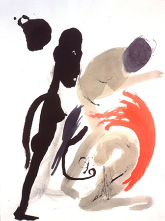 | David Kordansky Gallery is pleased to present an exhibition of works on paper by Don van Vliet. This exhibition is organized in collaboration with Michael Werner Gallery and includes van Vliet works spanning the mid-1980s to the early 90s. The opening reception will be held on Saturday, October 27th from 6 to 9 pm, and the exhibition will be on view through November 24th. Visual artist, poet, musician, and subject of legend, van Vliet is best known in his incarnation as Captain Beefheart, seminal leader of the Magic Band from the mid-1960s through the 1970s. He worked intensely as a painter even while gaining critical recognition for his musical genius, and has been exhibiting his work internationally since the early 1980s. In 1981 he abandoned music for good, repairing to a trailer in the Mojave Desert to paint. An ever-modulating bank of animals, desert vegetation, and distorted human figures comprise the unique pictorial vocabulary van Vliet has nurtured for a lifetime. His works on paper are intimate revelations of this private language: bodies and muffled forms push, pull, and skirt along the fringes of a primordial universe. Marked with ink, gouache, wax crayon and pencil, these pieces display the immediacy native to the artist�s approach. Van Vliet�s highly intuitive style transcends the art world penchant for swift categorization. His coarse delivery, primitive hieroglyphs, and use of caricature invite comparisons to New York School abstract expressionism of the 1940s and 1950s. But van Vliet�s work diverges from this tradition in its pointed omission of all traces of the modern world and lack of concern for the communicative properties of painted forms. His self-imposed separation from the art world and proclaimed disregard for art history (he limits his declared influences to Vincent van Gogh and Franz Kline) evidence a career-long refusal to ally with any movement. This work is devoted compositionally and conceptually to the fringes, propelled by discontinuity and absurdity. Van Vliet frequently omits a compositional fulcrum, yet arrives at rhythm and an unlikely comic coherence. The desert�s haunting expanse and impalpable imagery of mirage and myth pervade his paintings. Their glaring white spaces not only suggest this landscape, but leave openings for the viewer�s subjective intervention. This is terrain where the unconscious takes over. Van Vliet�s output is riddled with non-cognitive associations and subconscious automatism, but it is nevertheless steeped in archetype. Incipient roots of form, myth, and perception come across with universal ardor. The artist, however unwillingly, has confronted the psyche of 20th century America, and spirited it away to the desert to expel its spasmodic dream-version. Don van Vliet was born in 1941 in Glendale, California. His work was recently exhibited at Anton Kern Gallery and Michael Werner Gallery in New York (2007). In 1994 a retrospective entitled Stand Up To Be Discontinued traveled to the Bielefelder Kunstverein / Museum Waldhof in Germany, the Kunsthallen Brandts Kl�defabrik in Denmark, and the Brighton Museum and Art Gallery in England. He lives in northern California. | ||||