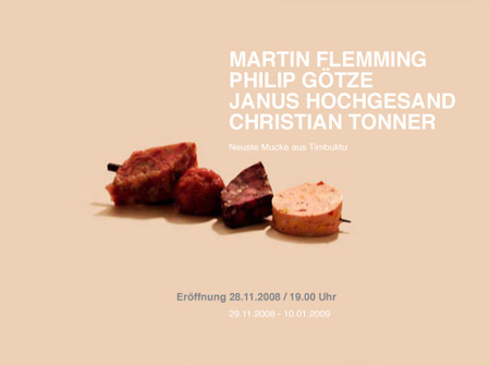 | FIEBACH & MINNINGER: Martin Flemming / Philip G�tze / Janus Hochgesand / Christian Tonner �Neuste Mucke aus Timbuktu" - 29 Nov 2008 to 10 Jan 2009 Current Exhibition | ||||