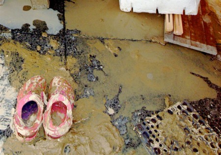 | Foxy Production presents Year of The Pig Sty, Hany Armanious� inaugural New York exhibition. In Armanious� provocative work, perverse actions take place upon unexpected materials, resulting in enigmatic objects, scenes and associations. Like a pranksterish alchemist, he transforms the process of casting into a witty and symbolic practice. His detours and digressions through the fictional systems he constructs, paradoxically foster both confusion and engagement. Year of The Pig Sty is an installation with an internal logic that seems more elusive the longer the work is contemplated. The viewer is greeted with a shocking vista of filth and disarray: on closer inspection, the work resembles a wayward workshop, where strange organic objects are crafted from mud. A desperate struggle seems to have taken place to keep an outmoded artisanal practice going. The installation is a site where intense and delirious actions have taken place, where motives remain mysterious, and odd linguistic connections are forged. Recalling Beuys� interplays between textures and history, Year of The Pig Sty inventively interweaves materials and allegory; but unlike Beuys� work, the associations here are inconclusive, provisional, and likely to be misleading. How various parts of the installation relate to one another can be alternately elementary or elusive. Crocs, the lightweight therapeutic footwear made through injection casting, figure centrally in the work: in one area, a chaotic collection of Crocs, shoe molds, molded bacon, shoeboxes, socks, among other elements, poetically and humorously conflates therapy, consumerism, and failure. An oversized Styrofoam box, hand-carved and containing mud and oversized truffles made from soil and resin, is surrounded by muddy Croc footprints. A trough constructed from form-ply is filled with mud, as if waiting for pigs to return. Resembling an alien pod, a white Styrofoam box is fused with the sole of a Birkenstock and cast in resin. A doormat with hollows is used to mold circular bricks through the action of the muddy Crocs being wiped on it. The bricks are dried under a snooker table light with hydroponic grow lamps that resembles a descending spacecraft. The same bricks are braced together to form pottery pool cues; apparently the end-product of this wayward production line. The installation represents perhaps an artist�s studio in throes of fervid activity. Messy, unformed, embryonic objects are in the process of objecthood, as if we are witnesses to the primal scene of creativity. Or has the habitat of the artist been terminally disturbed, the scene contaminated, the project abandoned? HANY ARMANIOUS (Cairo, Egypt, 1962) lives and works in Sydney. He holds a BA in Visual Arts, City Art Institute, Sydney, Australia. Selected exhibitions include the Gallery of Wellington, Wellington (2007)(solo); Institute of Modern Art, Brisbane (2006)(solo); Monash University Museum of Art, Melbourne (2006); Busan Biennale, Busan (2006); Ocular Lab Inc., Melbourne, (2005)(solo); National Gallery of Australia, Canberra (2005); Auckland Art Gallery, Auckland, (2004)(solo); Ian Potter Museum, Melbourne, (2002)(solo); UCLA Hammer Museum, Los Angeles (2001) (solo). | ||||