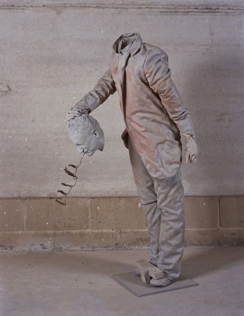 Juan Mu�oz, Untitled, 2001 Pigmented polyester resin, fibreglass and bronze 140 x 65 x 80 cm | |||