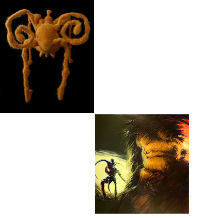 images from top: Alexandra Newmark, In the Forest (detail), mohair, 2007 Gregory Curry, Memory of a Distant Future, acrylic on canvas, 2007 | |||