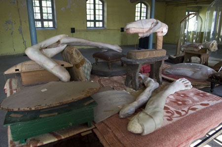 | 1 venue, 4 exhibitions: 26th June � 3rd October 2010 3 solo exhibitions: Berlinde De Bruyckere, Urs L�thi, Serse 1 group exhibition: Idoles (Idols) with Kendell Geers, Anish Kapoor, Liu Jianhua, Moataz Nasr, Luca Pancrazzi, Michelangelo Pistoletto, Arcangelo Sassolino, Pascale Marthine Tayou LE MOULIN Galleria Continua, proud of the San Gimignano and Beijing experiences, launched a new project, The Moulin de Boissy, a peculiar site in the Parisian region dedicated to contemporary art creation. Le Moulin hosts large scale exhibitions and projects by major artists from the five continents several times a year, following the rhythm of the seasons. Renovated, the site, a former factory of 10,000-m� embraces a new artistic life with already 15,000 visitors during the first two years of activity. The local population, Parisians, the international art scene, and the region bring passionate support and help to spread this new wave of culture throughout the area. The site, as well as having commercial preoccupations, also turns itself towards the public and its desires. For its 10th exhibition�s opening, Le Moulin, after 3 years of existence, will host 3 solo shows: Berlinde De Bruyckere, Urs L�thi and Serse, each having very different approaches and reasoning. In parallel, Le Moulin proposes a group exhibition, entitled Idoles (Idols). Once again, Galleria Continua demonstrates the extent to which various forms of art, Berlinde De Bruyckere�s sculpted figures, Urs L�thi�s installations and Serse�s drawings, can be adjacent to a group show with strong themes, all integrating into one same, and atypical space, Le Moulin. Berlinde De Bruyckere The sculptor Berlinde De Bruyckere is considered to be one of the major female Belgian artists today. She was born in Gent in 1964 where she lives and works. Her solitary figures are formed from an assembly of heterogeneous, plant and organic materials (wax, wood, hair...). Berlinde De Bruyckere evokes death and violence. Her bodies with cyanotic skin, often without a head, and sometimes without gender, and her hung or slumped animals, infringe on imagination linked with the theme of brutality. She re-elaborates anatomical images and shapes to spark duality between terror and pity, love and suffering, peril and protection, confronting the state of abandon of the body. She thus appropriates certain structural codes peculiar to the representation of the suffering body in medieval or Renaissance painting. The concept of duality is at last all the more valued by the choice of her subjects: animals and plants bear the contrasts of the superior and inferior world describing the distance between the earth as well as the spiritual, like a gap which seems equally to govern the universe of man. Berlinde De Bruyckere�s work has been exhibited at La Maison Rouge in Paris, at MUKHA in Anvers, the Kunsthalle in Dusseldorf, the Fondazione Sandretto Re Rebaudengo in Torino and the Lyon Biennial of Contemporary Art. Urs L�thi : Art is the better life Urs L�thi was born in 1947 in Lucerne (Switzerland), he lives and works in Munich. Since the beginning of his career, Urs L�thi has used different media: photography, painting, and installations. Since 1968, he has developed a new photographic work based on himself, his body, which becomes the support and the subject of his art. In these true staging self-portraits, the artist disguises himself or dresses up, playing on sexual ambivalence. Most frequently he represents himself in polyptychs and combines himself with exterior objects or figures (female characters, landscape, empty interiors�), enrolling it in the social context of his period. Urs L�thi thus sets off on a search for his identity, whilst bringing to light links between art and life, he who is a supporter of the expression �art is the better life.� He takes the spectator through his experience and his works towards what has a hold on him: memory, personal account, research, exploration, sadness and distance. Urs L�thi has acquired a significant notoriety globally thanks to numerous solo exhibitions in museums and galleries, in Switzerland and abroad. He received the Prize of Honor from the canton of Zurich for his work in 1996. In 2009, the town of Kassel awarded him the Arnold-Bode-Preis Prize. Serse : Disegni in Scala Serse Roma (born in San Polo De Piave in 1952, Italy) lives and works in Trieste. He has pursued his artistic research for more than twenty years and is considered one of the key figures in the panorama of contemporary Italian drawing. The artist produces his works by using graphite powder and rubber on paper. His works represent the plant and architectural landscape as only a photograph can and is characterized by the sophisticated use of black and white. According to the artist, these two tones are a way of understanding the physical essence of reality and matter. Through his play on shadows and light, Serse manages to create an almost magical landscape, where time is suspended: storms, which disrupt the sea, remain frozen in his photogram; the reflections carved in real time have hardly finished blending. Serse Roma�s work has been displayed in many museums like the Museum of Beaux Arts and the SMAK in Gand, at the Royal Palace in Milan, at the Luigi Pecci Centre for Contemporary Art, etc. and in 2005 participated in the third Valence Biennial in Spain. Idoles (Idols) KENDELL GEERS, ANISH KAPOOR, LIU JIANHUA, MOATAZ NASR, LUCA PANCRAZZI, ICHELANGELO PISTOLETTO, ARCANGELO SASSOLINO, PASCALE MARTHINE TAYOU Idoles (Idols) is the third group exhibition organized by Galleria Continua / Le Moulin. It gathers 8 renowned artists who exhibit their own idols or who show the spectator the place that the old and contemporary idols occupy in today�s society. Initially signifying a representation of divinity as a cult object, the idol henceforth assigns in a much wider way in informal language, a personality taken as a m