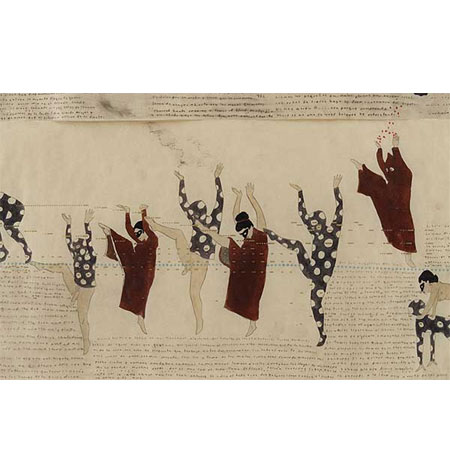 Marcel Dzama, "The possibilities of a rider�s song�, 2009 Tinta y acuarela sobre papel. (Detail) | |||