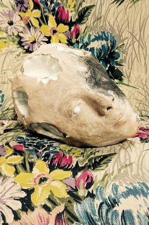 | Richard Fauguet Bivalve & Monocouche 13.03 - 18.04.15 Vernissage jeudi 12 mars, 18h à 21h Opening Thursday, March 12, 6 to 9 pm Between the 13th March and the 18th April 2015, Art : Concept will present Bivalve & Monocouche, a unique exhibition featuring Richard Fauguet. After his 2003 Châtaigne et vin blanc exhibition, this show, which could have been titled, not without irony: “Le cubi et le visage”*, will allow us to re-discover the hybrid and dual character typical of the artist’s universe. From the busts covered with game-marbles (1997) to the coconut-heads (2000), from his Tipp-Ex drawings to the postcards with pouring-spout appendages (2007-2013), the emergence of dual imagery crosses the greatest part of his work. The exhibition space will be constructed like an enigmatic landscape split in two: A yellow, almost chemical-looking sea on one side, on which women’s heads seem to float in an invasive movement of flooding of the gallery’s floor. A shelf full of glass-plate drawings provides a line of horizon. On an aesthetic level, duality is expressed as much by the glass drawings, with their games of cast shadows on the wall creating doubles, as by the series of clay heads, for which double-valve mollusks have been selected and into which the empty shells have been embedded. Some of these heads are double, just like the God Janus, while others seem to stare at their own reflection in the bag on which they rest, in an attitude that seems to eco the myth of Narcissus. One way or another, all of them have two faces. They are figures of hybridism: fish-and-woman, alien-and-woman or gorgon-and-woman. They almost seem to follow an extremely classical sculptural pattern: However, the materials and techniques employed – double-valve shells of all sorts that have been consumed by the artist and then grafted into the clay to create heads – points at procedures that make them more akin to collages than to a sculptural practice in its traditional sense. Similarly, his drawings often are reassembled scraps of papers that have been torn out of magazines with the help of adhesive strips. The exhibition as a whole tends to function as a mental collage that assembles a great diversity of universes, imaging systems and seemingly antithetic references: sea and land, antiquity versus Rocaille, the nobleness of an art opposed to the triviality of the materials employed. The result is the production of a rococo yet poor line of aesthetics. Both in his drawings and in his sculptures, Richard Fauguet revisits the most classical poses, with the help of glossy fashion magazines as far as the drawings are concerned, and with the help of the embossing effects of a fish-based tasting menu when it comes to sculpture. This work recalls his 2012 play-dough series based on the portraits of Picasso’s partners, but things are a little different here: The celebrity-pantheon has given way to women from his entourage as well as perfect strangers. The coexistence of marine creatures, or rather what is left of them, with clay heads severed from their bodies, allows Richard Fauguet to propose a deviant version of the myth of Medusa, in which the Gorgon is coupled with its petrified victim. Fixed into blocks of clay but deliberately not solidified by cooking, these heads are not dissimilar to the skulls produced by some of the rituals of the Paleolithic, in which skulls were covered with shells in what looked like an attempt to deny the disappearance of the face. Reference to these cults, which in Georges Didi’s Huberman’s opinion were contemporary of the first forms of portrait, inscribes the artist’s work within the history of portraiture since its origin: ' The tradition of portrait maybe began the day when our eyes looked down with terror and dismay at a loved and familiar face fallen to the floor and never to get up again.”** Julia Mossé // Translation Frieda Schumann * Play on words referring to Georges Didi-Huberman’s text: 'The Cube and the Face” written in 1993, about a sculpture by Alberto Giacometti. Here the word 'cube” has been substitued with the word 'cubi” (the'Bag-in-Box” type of container often used for cheap wine) ** Georges Didi-Huberman: "Le Visage et la Terre” in Artstudio, summer 1991, n°21 Richard Fauguet was born in 1962 in La Châtre. He lives and works in Châteauroux. His work has been purchased by numerous public collections among which: Fonds National d’Art Contemporain, Paris; Frac Île-de-France, Paris; Frac Limousin, Limoges; MAC/VAL, Vitry-sur-Seine and Les Abattoirs, Toulouse. Several personal exhibitions have been consecrated to his work in the last years: Vivement demain, MAC/VAL, Vitry-sur-Seine (2012) ; Selon Arrivage, Art : Concept, Paris (2011) ; Ni vu, ni Connu, Frac Limousin, Limoges (2011) ; Pas vu, pas pris, frac Île-de-France, Paris (2009). --- La galerie est heureuse de présenter Bivalve & Monocouche, la nouvelle exposition personnelle de Richard Fauguet, du 13 mars au 18 avril 2015. Après Châtaigne et vin blanc, on retrouve dans cette exposition, qui aurait pu s’intituler non sans ironie « Le Cubi et le visage », le caractère hybride et dual propre au travail de l’artiste. Qu’il s’agisse des têtes en bille (1997) ou en noix de coco (1999), des dessins au Tipp-Ex, ou encore de sa série de cartes postales aux becs verseurs (2007-2013), l’apparition de l’image double traverse une grande partie de son œuvre. L’espace d’exposition est construit comme un paysage énigmatique en deux parties : une mer jaune, quasi-chimique, où flottent des têtes de femmes envahit le sol de la galerie ; une étagère de dessins sur verre forme la ligne d’horizon. Plastiquement, la dualité s’exprime autant dans les dessins, dont le jeu d’ombre sur le mur provoque le dédoublement de la figure, que dans la série de têtes en terre, pour lesquelles l’artiste choisit, précisément, des coquillages à deux valves. Certaines 