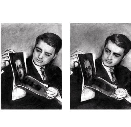 | JEAN-LUC BLANC TU ME FERAS PLAISIR ART: CONCEPT, PARIS 10.10 - 07.11.2009 Pour sa nouvelle exposition personnelle � la galerie art : concept, Jean-Luc Blanc livre une s�lection de peintures et de dessins r�alis�s entre 1986 et 2009. Le titre de l�exposition,Tu me feras plaisir/ Toto Le Mom�, fonctionne comme une injonction biblique, un commandement invers�. Les �uvres ont �t� organis�es en deux sections, le visiteur p�n�tre d�abord dans une salle de moyens et grands portraits parmi lesquels celui de Mia Farrow ou celui de Debbie Harris. Dans la seconde salle, l�artiste a choisi d�op�rer par un dispositif frontal unique : un seul mur sur lequel il pr�sente un all-over de dessins dispos�s en damier. La lecture peut alors se faire de multiples fa�ons : horizontalement, verticalement ou en diagonale. Le mur devient alors l��quivalent d�un livre ouvert, �clat�. L�imagerie de JLB emprunte principalement au cin�ma sans pour autant reproduire des images tir�es directement des films. L�artiste s�approprie des cadrages, des visages ou des sc�nes qui constituent son univers personnel. En parall�le � ce travail inspir� du � cin�fils � qu�il est, dad is dead, JLB r�alise des dessins � partir de petits objets ou figurines qu�il assemble telles de petites dramaturgies. Ainsi, il superpose de fa�on incongrue des personnages ou des sc�nes dont les gestes et les actions d�peintes deviennent, par association d�id�es, surr�alistes. JLB navigue dans une panoplie de genres �tendue. Loin d��tre une simple galerie de portraits d�di�e aux stars du cin�ma, cette collection de dessins puise aussi bien dans le registre de la sc�ne de genre l��ternel masculin-f�minin que dans un registre d�images proches du cartoon our du comic book. Entre les deux salles, comme pour assurer la transition, le dessin Which one the First (2008), repr�sente le double portrait de Georges Eastman Kodak r�v�lant le polaro�d de son propre portrait. Cette oeuvre est singuli�re dans la production de JLB : contrairement � la plupart de ses �uvres, elle porte un titre. La rh�torique de l�image fonctionne ici comme une auto-critique et synth�se de la pratique de l�artiste. L�effet d�arr�t sur image est mis en abyme par l�instantan� que l�homme est en train de r�v�ler. Partant de l�image originale, document historique � fort impact publicitaire, JLB choisit le dessin pour figer ou suspendre � nouveau le sujet. Le dessin, m�dium manuel, vient ici questionner la permanence et l�exactitude de la reproductibilit� photographique. Le double propos� par l�artiste n�en est pas r�ellement un de m�me qu�un tirage photographique n�est jamais strictement identique au pr�c�dent. Un l�ger changement de r�glages techniques ou des imperfections du papier suffisent � changer l�image. JLB confronte sa pratique manuelle � la photographie, qui malgr� l�absence de la main de l�homme demeure imparfaite. C�est par le biais d�une m�taphore iconographique que l�artiste aborde la qu�te d�absolu par l�image. Cependant, cette qu�te s�annonce comme un pied de nez � l�image originelle, au voile de � Veronica �, litt�ralement � la � vraie ic�ne du Christ �. JEAN-LUC BLANC YOU WILL MAKE ME HAPPY ART: CONCEPT, PARIS 10.10 - 11.07.2009 For his new solo exhibition at art : concept, Jean-Luc Blanc selected some paintings and drawings from 1986 to 2009. The title of the show, You will make me happy, works as a biblical injunction, a reversed command. The works have been organized in two sections, first the viewer enters into a medium and large paintings room among which Mia Farrow or Debbie Harris�s portrait. In the second room, the artist operates with a unique frontal device: a single wall on which he presents drawings displayed as an all over draughtboard. Therefore, this set can be read in many different ways: horizontally, vertically and diagonally. Thus, the wall is comparable with an opened, split book. JLB�s imagery essentially borrows from cinema, but this doesn�t necessarily imply that he reproduces images directly taken from some films. The artist appropriates framings, faces or scenes which constitute his personal universe. In parallel to this work influences by his movie-goer position, JLB also realizes drawings from small or model objects or figurines which he uses to create sketches. The juxtaposed scenes or characters function such as surrealistic association of ideas. JLB navigates in a wide range of pictorial genders. Far from being a portraits gallery dedicated to the cinema stars, this collection draws in the �sc�ne de genre� - l��ternel masculin-f�minin � as well as in a register of images close to the cartoon or the comic books. In-between the rooms, the diptych Which one the First (2008) provides with a transition. It represents Georges Eastman Kodak�s double portrait revealing the Polaroid of his own portrait. The singularity of this work comes from its title (usually JLB�s works don�t have any title) and from the rhetoric effect it condenses. The image functions as an auto-critique and a synthesis of the artist�s practice. The freeze frame effect is mise-en abyme with the snapshot being revealed by the protagonist. Regarding the original image, a historical document and efficient advertising, JLB chooses the drawing to freeze or suspend the subject again. As a manual medium, the drawing, questions the permanence and the exactness of the photographic reproducibility. The double made by the artist is not exactly a double, such as from a photographic print to another, differences always remain. A slight technical change or some paper imperfections modify the image. JLB confronts his manual practice to the photography, which remains imperfect despite of the non-intervention of the human hand. This is