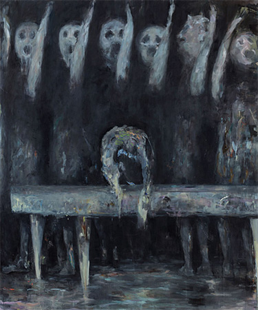 | The Art of Watching Birds Val�rie Favre February 26 � April 21, 2011 Private View on Friday, February 25, 7 � 9 pm Let's Ask the Kobolds The phenomenal painting cycles on which Val�rie Favre has been working for over ten years are borne by a provoking realm which, to signify the entire "potlatch" as a conglomerate promising freedom, could well carry the title "societal mirror of spectacle." Favre's productivity is a rebellious aggressiveness, a radical reasoning between that very spectacle society that refrains from declaring Guy Debord's posthumous popularity either a success or failure and that lonely but ingenious process of self-conveyance that quickly volatilized every solidified image of the "persona" (still potent today) of the era of New Objectivity in Berlin of the 1920s. Hedonism, social glaciation, and separation anxiety. Today we should consider Debord, the painters of the 1960s or 1980s, but also the painter Val�rie Favre in this (or a similar) way: conception of humanity is an attempt at life! Favre's apprenticeship period in Paris�she was born in Switzerland�may have reinforced this mindset and working approach of hers; yet a real workplace she has found in Berlin, as she herself notes. As an autodidact and hands-on explorative media theorist, she has arrived at painting, whose inherent radicality is fed by the tension between figuration and abstraction, in order to create the beautiful, the decorative, the facile, the brutal, the grotesque, the absurd, and the ugly through the exploration of eclectic methods. Her erratic technique of perpetually and suddenly changing her way of painting speaks of self-evaluation, and at the same time she is using these means in an attempt to snare our attention, encouraging us to again and again accompany her work and her quest anew. Yet she thereby slips into a (rather uncomfortable) antithesis of tradition since she neither flees nor affirmatively tags along, but rather figuratively (speaking) stumbles along. Here truth and reality manifest as natural painting�the freedom of which is not hampered by any order of style, color, theme, or (finally) institution�and as individuality. The path to this state is�and one must say unfortunately�harsh and cruel. Thanks to several figures and image metaphors, Favre has found outlets, pictorial and textual platforms in the paintings as stages or images carriers. Intercepted upon these is energy-laden impetus, its critique, aggression, and diffident power. It is a way of painting without blinders, without fear of mistakes and errors�a liberating means of painting which does not hesitate to interpret a visibility of forgetting. Inhabiting her canvases since 1999 are the Hasenfrauen, and they are situated next to Lapine Univers in a symbolic cosmos. In "Die Antwort der Zwerge" there are jugglers and variety-show artists shown in a state of exposure, where from the left their symbolic despair, along with the subtle- to na�ve-erotic presence (la pine is also a term for the male penis), forcefully emanates from the dream of surrealism into reality on the right side of the painting. Almost literary and at times reminiscent of Oskar Kokoschka, seized by the enchanted reality of the dolls, they skip slightly entranced through the mystical pictorial space. Favre thus seems to have found�in addition to the frequently thematized (dark) forest�a figurative link between her Swiss roots, her visual experiences in Paris, and her German approach to painting: a woman who suffers from strange excesses. Whereby suffering can and should be understand here in terms of the connotations of the (German) root "leid," namely, "erleiden" (to suffer), "gut leiden" (to like something), and "leid tun" (to feel sorry). This time she cites Debord: "I will never forget that he meant one should never spare spectators." And one can just as easily call on Antonin Artaud, whose "Theater of Cruetly" demanded everything from everyone. And it is also certain that the dwarfs' answer harbors a surprise. Absurd groupings (or individual persons and animals) inhabit Favre's paintings; they have become individual canvas characters through the process of painterly mechanisms. From the depths of the pictorial imagination of the subconscious�like in films by David Lynch that originate from that strange, peculiar studio world of cinema as a dream factory�Favre's paintings virtually spring from the studio painting of anti-commodity aesthetics of society and art. With dream images frequently evoked, we experience neither beginning nor end. Her treatment of subjects, forms, breaches, repetitions, of a change in intensity and tempo, of shifts on pictorial surfaces like the Kafkaesque transformation of the protagonists and the ever-respectful yet inscrutable disclosure of a dark side of the subjective world view. Death is lurking everywhere. Favre paints the picture as a cut through the surface of things, thus dichotomizing the public into dreaming aficionados and reality-avoiding repudiators. In her images, the kobolds have initiated a new, eerie-lovely potlatch�and we are watching the production with alarmed fascination. (Text: Gregor Jansen) Val�rie Favre was born in 1959 in Evilard, Switzerland, and began her artistic career in Paris near the end of the 1980�s. She has been living and working in Berlin for the last ten years, where she took on a professorship at the Universit�t der K�nste in 2006. | ||||