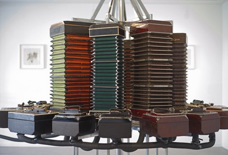 | CONSTANTIN LUSER Ausstellungsdauer | Duration: 7. September - 17. November 2012 Eröffnung | Opening: 7. September, 2012, 18:00 - 22:00 Uhr Die Sphäre ist das innenhafte, erschlossene, geteilte Runde, das Menschen bewohnen, sofern es ihnen gelingt, Menschen zu werden. Weil Wohnen immer schon Sphären bilden heißt, im Kleinen wie im Großen, sind die Menschen die Wesen, die Rundwelten aufstellen und in Horizonte ausschauen. In Sphären leben heißt, die Dimension erzeugen, in der Menschen enthalten sein können. –Peter Sloterdijk Die Galerie Jette Rudolph freut sich, Constantin Luser bereits zum dritten Mal in einer Soloshow zu zeigen. Neben der Zeichnung, welche dem in Graz/Österreich geborenen Künstler stets als Ausgangspunkt dient, sind dreidimensionale Installationen und Collagen wesentliche Bestandteile seiner Arbeit. Mit seinen Klangskulpturen gestaltet der Künstler nicht nur räumliche Objekte, sondern macht diese gleichsam akkustisch verfügbar, um zugleich seinen Rezipienten zur performativen wie kommunikativen Interaktion zu animieren. Die zu Objekten arrangierten Instrumente nehmen dabei durch den an ihnen zu erzeugenden Klang den Raum ebenso ein wie die bekannten großformatigen, feinen Zeichnungen des Künstlers. Mit seinen arbeitsintensiven Werken zerstückelt Constantin Luser die Inhalte übermittelter Botschaften, justiert diese neu und restrukturiert und komprimiert sie schließlich zu vielschichtigen, partiell imaginären Konstrukten. Kontinuierlich entwickeln sich die Luser’schen Ideen anhand vorgefundener Versatzstücke, unmittelbaren Reminiszenzen, persönlichen Gedanken, Erfahrungen und Vorstellungen zu beziehungsreichen Gefügen. Im Zentrum der gegenwärtigen Einzelausstellung steht die oktogonal angeordnete Installation von acht Bandoneons. Ausgestattet mit einer zentral angelegten Luftversorgung lässt sich das Oktogon aus Harmonikainstrumenten polyphon bespielen. Gleichsam verweist die Skulptur auf die bewegte Geschichte des Handzuginstruments, welches im 19. Jahrhundert von dem Deutschen Heinrich Band entwickelt wurde und – trotz des Verbotes durch die Nazis – insbesondere in Südamerika beliebt war.1 Begleitet wird die Skulptur von mehreren kleinformatigen Collagen, deren Fragmente der Künstler aus dem sogenannten „Braunen Meyer“2, der tendenziös und nationalsozialistisch eingefärbten Enzyklopädieausgabe aus den Jahren 1936 bis 1942, herauslöste. Im freien und assoziativen künstlerischen Schaffensprozess arrangiert Luser das Bildmaterial neu und kombiniert es partiell mit eigenen Zeichnungen. Dem vermeintlich objektiven Anliegen von Lexikonbildern im ursprünglichen Kontext enthoben, müssen die Holzstiche als ideologisch tingiert aufgefasst werden und offenbaren im neuen Arrangement der Collage ihren kommunikativen Charakter. Luser unterwirft die deklamatorischen Abbildungen der Prozesshaftigkeit und erzeugt ein Zwiegespräch der Fragmente unter neuen Vorzeichen. Das Ausloten unterschiedlicher Bedeutungs- und Wahrnehmungsebenen, die der Künstler in jeder seiner Arbeiten zusammenbringt, wird ebenfalls in den großformatigen Zeichnungen auf Alu-Dibond offenkundig. In akkuraten und präzisen Linien zeichnet Luser Ideengeflechte, welche wie komplexe Pläne anmuten. In unterschiedlichen, alternierenden Ebenen entwickeln sich die Ansichten aus abstrakten Formen, figurativen Momenten, Chiffrierungen und Symbolen zu einem Konnektiv aus Realitätseinfluss, Vorstellungskraft und persönlichen Gedanken. Die Farblasuren, welche die Arbeiten des Künstlers partiell durchziehen, eröffnen bisweilen synästhetische Erfahrungsebenen. Die unterschiedlichen, den Arbeiten immanenten Bedeutungsdimensionen in Anbindung an lebensweltliche Räume verbinden sich – abgebildet, beschrieben oder kartiert – mit verblüffend phantastischen Details. Denn wie Paul Valéry treffend bemerkt gibt es möglicherweise „keine inständigere Versuchung des Geistes als das Zeichnen“3. Es überrascht somit kaum, dass sich diese schier unbegrenzten Darstellungsmöglichkeiten im Werk Lusers mit dem Medium der Collage und deren mannigfaltigen Kombinations- und Visualisierungs-möglichkeiten fortsetzt. Erzählerisch zwischen innerer und äußerer Welt verortet, treten die Darstellungen in Verhandlung mit dem Betrachter, welcher im Grunde dazu herausgefordert wird, den erarbeiteten Strukturen zu folgen. An Stellen der mehrschichtigen Unschärfe entpuppt sich das erstaunliche Potenzial des experimentellen Verlassens realit-orientierter Wahrnehmung als ein Streben nach Entwicklung und Transzendenz. Jenseits von zeitlicher Einbindung eröffnen die Arbeiten Lusers dynamische Vorstellungsräume, deren semantische Felder sich der Betrachter fortwährend orientierbar machen muss. ________ [1] Vor allem im Bezug auf den Tango war das Instrument ab Anfang des 20. Jahrhunderts prägend. [2] Die 8. Auflage des Meyer Lexikon erschien in 9 Bänden, welche auf Grund des Krieges nie vollendet wurden. Die Zensurkommision der NSDAP bearbeitete weite Teile der Lemmata. [3] Paul Valéry, Tanz, Zeichnung und Degas, übers. v. Werner Zemp, revidierte Ausgabe, Suhrkamp, Frankfurt a. M., 1996, S. 69 english version The sphere is the interior, disclosed, shared realm inhabited by humans – in so far as they succeed in becoming humans. Because living always means building spheres, both on a small and a large scale, humans are the beings that establish globes and look out into horizons. Living in spheres means creating the dimension in which humans can be contained. – Peter Sloterdijk The Jette Rudolph Gallery is pleased to present Constantin Luser’s third solo show at the gallery. A native of Graz, Austria, drawing always serves as his starting point, but his work also largely consists of three-dimensional installations and collages. With his sound sculptures, the artist not only creates spatial objects, but also makes them available as an acoustic experience; this is to encourage viewers to 