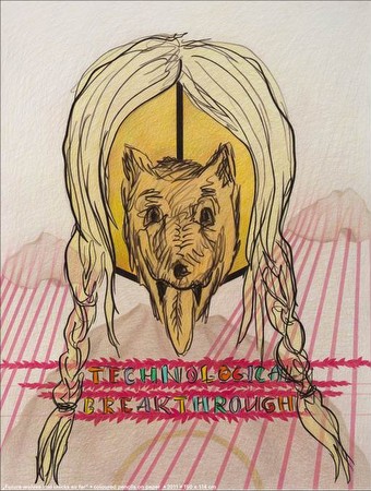 | Maia Naveriani Future Wolves and Chicks so far 10.02.2012 - 24.03.2012 As a woman artist I have an unavoidable instinctive tendency to first of all address the queries about female identity and consciousness, and its relevance and impact in a contemporary context of dissolved values and ideologies, to reflect on the endless attempts of many "Little Red Riding Hoods" to leave home, walk through the threatening forest, swallow a wolf (and a grandmother)…and never look back... [Maia Naveriani] Until now, the Georgia-born artist Maia Naveriani mainly dealt with images from her instant reality, from film stills and advertisement and images with documentary character in order to investigate the colourful but also 'threatening' sociocultural 'forest' and to find her way through it. According to Naveriani, the large-sized colored pencil drawings from the current series are a result of cultural memory fragments. At the same time they are a nostalgic processing of life images, which the artist arranges in a different context and thereby creates a "post-real" open space. Quite often Naveriani's playful, collagelike image arrangement is an important means to new interpretation, as every image all by itself would be situated in a completely different area of analysis. Naveriani metaphorically describes her artistic work as a sort of alchemy: as an entering into a mystic terrain, as never-ending trials and errors, as the aim to create pure perfection and instead experience beauty in failures. Colored pencils in particular are able to create transparency and vulnerability in the drawings, which reveal the one and disguise the other layer by layer. Maia Naveriani lives and works in London - Maia Naveriani Future Wolves and Chicks so far 10.02.2012 - 24.03.2012 Als Künstlerin habe ich die unausweichliche Tendenz, zuallererst die weibliche Identität sowie das weibliche Bewusstsein zu ergründen und dessen Bedeutungen und Auswirkungen in einem zeitgemäßen Kontext zu betrachten, in dem Werte und Ideologien verschwimmen. Ich möchte die endlosen Versuche der vielen "Rotkäppchen" widerspiegeln, die ihr Zuhause verlassen, in den bedrohlichen Wald laufen, einen Wolf (und eine Großmutter dazu) verschlucken...und niemals zurückblicken… [Maia Naveriani] Die in Georgien geborene Künstlerin Maia Naveriani setzte sich bislang vorwiegend mit Motiven aus ihrer unmittelbaren Realität, aus Film und Werbung und Motiven dokumentarischen Charakters auseinander, um den farbenfrohen aber auch "bedrohlichen" soziokulturellen "Wald der Bilderflut" zu erkunden und sich aus diesem einen eigenen Weg zu bahnen. Die großformatigen Farbstiftmalereien des aktuellen Bilderzyklus sind laut Naveriani das Ergebnis kultureller Erinnerungsfragmente. Zugleich sind sie eine nostalgische Aufarbeitung von Lebens-Bildern, welche die Künstlerin in einem neuen Kontext ordnet und damit einen "post-realen" offenen Raum erschafft. Nicht selten dient die spielerische, kollageähnliche Anordnung der Motive als wichtiges Mittel zur neuen Sinnfindung, stehen diese doch getrennt voneinander in einem ganz anderen Interpretationsfeld. Naveriani beschreibt ihr Schaffen nicht umsonst metaphorisch als eine Art Alchemie: als Eindringen in ein mystisches Terrain, als Ansammlung von Versuch und Irrtum, als Bestreben, Vollkommenes zu erschaffen und stattdessen auch das Scheitern als Schönheit zu erleben. Das Medium des Farbstiftes eignet sich daher im besonderen Maße dafür, eine Transparenz aber auch eine Zerbrechlichkeit in den Bildern zu schaffen, die Schicht für Schicht das Eine preisgeben und das Andere gekonnt verschleiern. Maia Naveriani lebt und arbeitet in London. www.galerievoss.de | ||||
