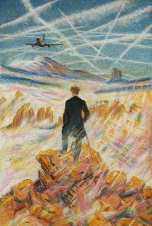 | Peintner @ Georg Kargl Fine Arts | K�mmerer @ Georg Kargl BOX Max Peintner - Caspar und ich 16/09/2009-07/11/2009 Bj�rn K�mmerer 16/09/2009-07/11/2009 MAX PEINTNER Georg Kargl Fine Arts Exhibition dates: September 16 � November 7, 2009 Caspar und ich, das sind viele Trained architect Max Peintner (1937) became well known in the early 1970s with his sarcastic drawings critical of modern life. In their bitter acerbic wit, his visions of technology, ski lifts, or highways are still today considered icons of the Austrian environmentalist movement. In the mid-1970s, an eye illness drove the artist to engage with the process of vision itself. Peintner drew things that everyone is familiar with, but usually does not find worthy of mention, for example, afterimages that remain after we accidentally look into a bright light. �For him, drawn self-perception is an appropriate means of expression for representing the perceived environment as it emerges in our minds. His work is about trying to show analytically the feeling and sensations of the ego in the form of a depictive function of that ego� (Peter Weibel). Max Peintner showed his first perception images in 1977 at Documenta 6, and represented Austria at the Venice Biennale in 1986. In 2000, Neue Galerie Graz dedicated a comprehensive retrospective to his work, and this was also the artist�s last solo exhibition. In eight years of untiring research, Peintner has explored the perspective, subjects, and fissures in the work of Caspar David Friedrich and created a presentation for the space of Georg Kargl Fine Arts that sketches the path taken by the artist from initial sketches to final drawings in oil stick. Peintner�s interest in Friedrich developed from his experiments with perception. �I noticed that the flicker in twilight reflects the gradation of neurons firing at the center of vision, and thus allow a concrete scaffolding to become visible which makes it possible to capture the space. In Friedrich�s art, in a sense hidden by the use of air perspective, there is often such an inner structure of space, his geometry is sometimes reduced to mere horizon, the vanishing point, if there is one, is marked by fanned out sunbeams as if by an exclamation point.� According to the Tyrolean artist, landscapes are to be interpreted as dream-like visions and allow us to deduce something of the essence of the dreamer, and in these terms explains his fascination with one of the most important landscape painters of romanticism. Peintner takes on Friedrich�s depictions of nature, often animated by a metaphysical transcendent character: he occupies himself intensely with their subject-matter and materiality, and in so doing provokes in his combination of various allusions to art history. With a challenging �Porno is out, religion is in,� the artist refers to the religious components in Friedrich�s works, without sacrificing a subtle irony. According to Friedrich�s point of view, the experience of nature is a very personal mystical-religious event, for him faith is a steadfast, massive rock, the spiritual foundation of man. The beholder finds people in Friedrich�s images usually resting in themselves, impressed by the natural spectacle and dressed in formal clothing standing before a rock. In Caspar David Friedrich, rear portraits are central, often of the artist himself. Since the 1980s, Max Peintner has repeatedly returned to the self-portrait as one of his key motifs, and always combines it with phenomena of perception and making perception visible. Max Peintner finds himself instrumentalizing the figure of this passive beholder for his own ends. The wanderer becomes a means for transporting his own experiences and naturally points to the destruction of nature and the environment by way of the consequences of technological progress such as aeroplanes and their condensation trails. Peintner shows us the world dependent and centered around the beholder. He emphasizes that self-observation is only a reflection of beholding. In his absurd natural compositions with perceptive images, he demonstrates how we really see reality, that is, with the eye of a beholder that has subjective defects and is an internal observer of the world. BJ�RN K�MMERER Georg Kargl BOX Exhibition dates: September 16 � November 7, 2009 A dark wall of boards fills the gallery space of Georg Kargl BOX. The object, which looks like a cabin, is placed on metal tracks and rotates on its own axis driven by an electric motor. The cumbersome sculpture fills the space, and makes it impossible to enter the white cube, creating a space within the space, but only allowing a view from the outside through the gallery window. Vision has to compensate for what is lacking in terms of physical-haptic experience in the viewing space. In so doing, the gallery space changes into a stage situation and the street in front of the gallery changes into a spectator space. This spatial separation from the object and the beholder alludes to the screening situation in the cinema, which assigns the viewing gaze a fixed location. Besides its materiality (construction wood), an antithesis to the white cube and the aesthetic of the fa�ade of the gallery designed by Richard Artschwager, the object fascinates in its play of gaze constellations. The rotating wooden body generates a visuality that is produced by the apparatus, and is a visual prosthesis like those nineteenth century optical devices, such as the mutoscope or the kinetoscope, that experiment with the laxness of vision. The young media artist Bj�rn K�mmerer, whose oeuvre already encompasses a range of noteable found-footage works and video installations, designed this spatial installation. It engages with the relationship between architectural and cinematographic space as most of his more recent film works and video installations. The wood object at Georg Kargl BOX played the main role in K�mmerer�s current fil