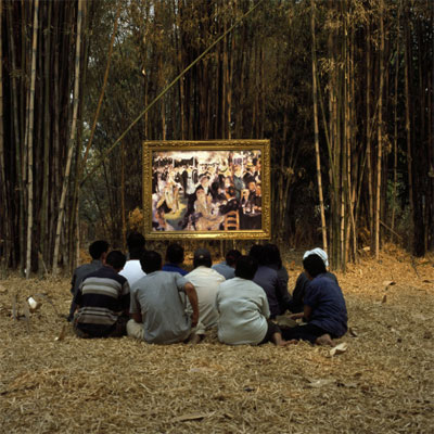 | Araya Rasdjarmrearnsook The Two Planets Series 9 October � 15 November 2008 private view: Thursday 9 October, 6-8pm For her second exhibition at Gimpel Fils, Araya Rasdjarmrearnsook will present a new body of work that explores how the narratives of art history are constructed and by whom. The Two Planets series (2007-2008) comprises film and photographic work recording the responses of Thai farmers to well-known western art masterpieces. Rasdjarmrearnsook�s project was inspired by her work as a tutor at Chiang Mai University. During seminars she became aware of the fact that many students were faltering when asked to criticize �great art works�. For Rasdjarmrearnsook, the students� hesitancy and doubt stemmed from the realisation that the works were already recognised as great, and they were unsure of how to react. At the same time, Rasdjarmrearnsook moved from the city of Chiang Mai to its rural suburb. Her daily scenery changed from the urban cityscape to agricultural scenes of bean fields and sometimes rice paddy, according to harvesting seasons. The Two Planets series unifies two worlds, that of art history and that of rural Thailand. Sitting before life-size reproductions of works such as �douard Manet�s Le Dejeuner sur l'herbe farmers and gardeners who do not know the financial or cultural value and history of the artworks speak about them with a freedom not available to Rasdjarmrearnsook�s students. The recorded conversations involve guesses and presumptions about what is in front of them, questioning what the protagonists are doing and why. In order to talk about Manet�s risqu� picnic, the farmers bring humour and use slang to replace words that, in Thai culture, should not be spoken between men and women. Rasdjarmrearnsook�s film and photographic works raise issues regarding the current debate over interpretation or experience: can we have a full appreciation of an artwork even if we don�t have all the information and history about it? To what extent does an over abundance of information and interpretation blind us to the pleasure of looking at an artwork and using our imaginations? Araya Rasdjarmrearnsook is a Professor of Fine Art at Chiang Mai University, Thailand and has exhibited widely. Solo exhibitions include: The Class, Downstairs at Gimpel Fils, 2006; Lament, Tensta Konsthall, Stockholm (2003); Why Is It Poetry Rather than Awareness? National Gallery, Bangkok (2002); At Nightfall Candles Are Lighted, Contemporary Art Museum, Chiang Mai and Chulalongkorn University Art Gallery, Bangkok (1999-2000); Lament of Desire, ArtPace, San Antonio, Texas, and the Faculty of Fine Art Gallery, Chiang Mai, Thailand (1998-99); Printmaking and Drawing, Atelier Forsthaus, Gifhorn, Germany (1990,1991). Group exhibitions include Dreaming/Sleeping, Passage de Retz, Paris, 2008; Those Dying wishing to stay, those living preparing to leave at the Thai Pavilion, 51 Venice Biennale, 2005; 54th Carnegie International, Pittsburgh, 2004-5; Insomnia, Institute of Contemporary Arts, London, (2005); Poetic Justice, 8th International Istanbul Biennial, Turkey (2003); EV+A 2002, Limerick, Ireland (2002); 1st Johannesburg Biennial, South Africa (1995); 1st Asia-Pacific Triennial, Brisbane, Australia (1993). | ||||