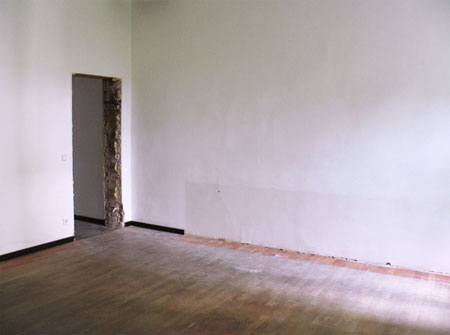 Die Auswahl von fr�hen Arbeiten von 1996 - 2001 beziehen sich alle auf die Idee des Ausstellungsraumes und seine wesentlichen, jedoch �unsichtbaren� Elemente, die normalerweise ganz hinter der Dominanz der ausgestellten Kunst verschwinden. Shared Floor (1996), Untitled (Wall) (1997), Freed Doorway (1998) und Untitled (1998) sind alle aus Elementen gemacht, die der K�nstler in unterschiedlichen Wohnungen und Galerien gefunden hat. Jedes Element bezieht sich direkt auf architektonische Elemente ihrer fr�heren Orte, obwohl sie an diesen urspr�nglichen Orten in einem gewissen Sinn unsichtbar waren: Die Objekte waren so sehr Teil des Raums, dass man sie nicht besonders beachtete.