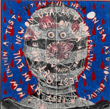 Texas-based artist Trenton Doyle Hancock returns to New York for his fifth solo exhibition at James Cohan Gallery, from November 1st through December 22nd, 2012. The artist is well known for creating densely layered mixed-media installations that merge words and images in painting, collage, sculpture, print, and the performing arts.
