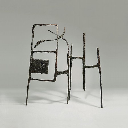 In the main gallery, the bronze works are installed on long pedestals where they resonate in visual phrases—the “sayings” suggested by the title of the series. Chinese grammar, similar to English, employs a subject, a verb, and an object in the construction of sentences. However in Chinese, other parts of speech, such as measure words and suffix syllables like “ma” or “le,” exist to connote suggestion or questions. It is through calligraphy that the ancient Chinese visually expressed the many intricacies of the written word. In finding a contemporary approach, Xieda has brought calligraphy into three-dimensional space, continuing the impulse, intact from ancient times, to expand upon the expressive capability of language. Minimal and elegant, there is a formal kinship with the Modernist geometry of David Smith and the texture, negative space and shadow play of Alberto Giacometti. Conceptually, however, the sculptures speak to the artist’s pursuit to reveal the common human experience as communicated through the origins of language.