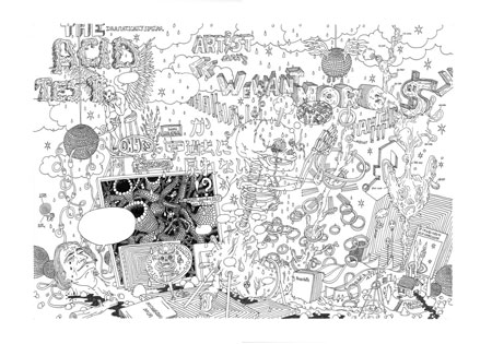 | P. Nicolas Ledoux - Solo Show - 6 sept / 1 oct 2008 vernissage / Opening samedi 6 sept 2008, 18h � 21h / saturday Sept 6th 2008, 6 to 9PM en pr�sence de l'artiste / with the artist P. Nicolas Ledoux P. Nicolas Ledoux is back at the Magda Danysz Gallery for his most important individual exhibition yet which emphasized the diversity of his talents and the deepness of his thoughts. For this exhibition, P. Nicolas Ledoux is showing black ink, very precise and detailed drawings, but also paintings he had painted, videos and installations. P. Nicolas Ledoux is a complex artist, and his graphic skills live up to that. In a duel with History and art history, his works provide material for criticism that can be simple or complex, depending on who is looking at them. His drawings are double-edged. They�re pretty, harmonious, even trendy, but in fact they�re deep creations which question the practise of contemporary art and the limits of painting. Christophe Le Gac says about Ledoux, � few art critics have tried to analyse his work, for it is too critical of criticism. � P. Nicolas Ledoux is a drawing art critic himself. He is first and foremost an intellectual, he multiplies references in order to divert them. The act of painting or drawing is an everyday pleasure to him, � as much as reading the paper or composing music �. His works, beyond the plastic aspect, are essentially conceptual. P. Nicolas Ledoux borrows the idea from conceptual art that the definition of art lies in artistic practise. As a member of the Ultralab group, which recently exposed at the Jeu de Paume Museum, P. Nicolas Ledoux showed his work in numerous galleries in France and abroad, in England, Australia and in the United States. This year the French National Fund for Contemporary Art acquired a very large drawing of his. This exhibition at the Magda Danysz gallery is the occasion to spend some time on the constructed reflexion of an artist who is still growing in contemporary art. P. Nicolas Ledoux Retrouvez P. Nicolas Ledoux � la galerie Magda Danysz, pour une importante exposition individuelle qui prouve la diversit� de ses talents et la profondeur de son propos. Pour cette exposition P. Nicolas Ledoux propose des dessins, � l'encre noire, pr�cis, d�taill�s, mais aussi des peintures, qu'il fait peindre, des vid�os ou encore des installations. P. Nicolas Ledoux est un artiste complexe au propos graphique touffu. Dans un face � face avec l'Histoire et l'histoire de l'art ses �uvres nourrissent un propos critique � la fois simple et complexe hselon qui les regarde. Le dessins de P. Nicolas Ledoux sont � double tranchant. Ils sont jolis, armonieux, branch�s m�me, mais il s'agit en fait de cr�ations profondes qui questionnent la pratique de l'art contemporain et les limites de la peinture. L'artiste utilise lui-m�me le propos du critique d'art par lequel il red�finit l'�uvre d'art. Christophe Le Gac �crit d'ailleurs : " peu de critiques d'art se sont essay�s � analyser son �uvre car trop critique envers la critique. " P. Nicolas Ledoux f ait de la critique d'art en dessin, en peinture ou encore en vid�o. P. Nicolas Ledoux est un intellectuel avant tout, il multiplie les r�f�rences savantes pour mieux les d�tourner. L'acte de peindre ou dessiner existe pour lui en tant que plaisir du quotidien " au m�me titre que de lire le journal ou composer des compilations musicales. " Ses �uvres, au-del� de toute consid�ration plastique sont essentiellement conceptuelles. P. Nicolas Ledoux emprunte � l'art conceptuel l'id�e que c'est dans la pratique artistique qu'est la d�finition de l'art. Membre du collectif Ultralab qui a r�cemment expos� au Mus�e du Jeu de Paume, P. Nicolas Ledoux a expos� dans de nombreuses galeries en France et � l'�tranger, en Angleterre, en Australie ou encore aux Etats-Unis. Cette ann�e le Fonds National d'Art Contemporain a fait l'acquisition d'un diptyque monumental de l'artiste. Cette exposition � la galerie Magda Danysz est l'occasion de revenir sur la r�flexion toujours plus construite d'un artiste qui ne cesse de grandir dans l'art contemporain. | ||||