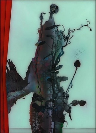 These layers of dark, yet playful, images layer a selection of his previous doilies - Charger, Smokescreen, Beelzebub, Garden of Earthly Delights, Doilies, Anarchy, Flags, Hole, Domestic Violence and Scalpels - combined with new found images - Israeli soldiers clearing Jewish settlers, a Spanish flamenco dancer, royal portraits from the seventies, and a selection of old flower arrangements. The result is an increasing complexity of imagery, though Periton is still interested in the same themes: order and anarchy, imprisonment and escape, decoration and disorder, love and death.