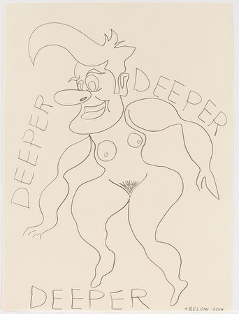| JOSHUA ABELOW: RELAX at Arts+Leisure May 10th – July 19th, 2014. Reception: Saturday, May 10th, 7-10pm. Freight+Volume is proud to announce the opening of its new project space, Arts+Leisure in East Harlem. Our inaugural project is a new series of drawings by Joshua Abelow entitled RELAX. Replete with a narrative of high- and lowbrow imagery ranging from exaggerated phalluses and cartoon breasts, to self-portraits, stick figures, warlocks, ghouls and misfits, Abelow is a poster boy for disaffected post-Gen X youth, as much influenced by and involved in social media as he is with Jungian and Freudian symbolism. RELAX shows an artist who is totally at ease with drawing, rare in an age of conceptual and digital artmaking. With a sure hand and a Matisse-ian simplicity and flair, Abelow chronicles the Rabelasian adventures and quixotic trials and tribulations of an artist wending his way towards emotional and artistic maturity within an urban framework - NYC. The people Abelow portrays in his rhythmic graphite on paper sketches are not so much caricatures as much as character-driven tragic heroes and heroines, bumping and colliding with each other in a clumsy yet erotic dance. Many of the drawings ironically portray running, hustling figures as well, at odds with the title of his show. They clamor for attention and respect, driven by a sexual neediness and narcissism that verges on the comic absurd. These drawings include a fair amount of Abelow's signature text, quirky titles and exclamations ("HELLOOO," "DEEPER DEEPER," "TRUE ROMANCE," "TRUST ME BITCH," INSTA DEATH," etc), which give the work a humorous, narrative slant. Above all, these scenes make us examine our own identity, our needs and vulnerability, our fragile egos, our fear and joy and addictive desire. The result is a very human and reaffirming embrace, a realization of what it means to be an artist and to be alive today. RELAX is composed of 25 drawings from a two-year period, never before shown, framed in a Crayola spectrum of stained maple molding against off-white mats. They are all 30x22” in format, lending a quality of storybook to the presentation. Typically, Abelow has presented a wide-ranging, salon-style body of work in previous exhibitions, which included paintings and drawings, geometric abstraction and figurative representation, but for his solo project at Arts+Leisure the artist has purposefully pared it down and limited his focus to this graphic series of work on paper. By doing so, he stills and distills the narrative to allow a considered reflection and contemplation of the pathos, sensibility and dialogue inherent in his work. Joshua Abelow is an artist living and working in New York. Solo exhibitions include “OH! ABELOW” at James Fuentes, New York (2011), "DUMB & EASY" at Tomorrow Gallery, Toronto (2011), “FAMOUS ARTIST” at Sorry We’re Closed, Brussels (2012), “ABELOW SCHMABELOW” at Brand New Gallery, Milan (2012), "Songs From A Room" at Devening Projects, Chicago (2012), “PAINTER” at Wasserman Projects, Birmingham, MI (2013) and "ABELOW ON DELANCEY" at James Fuentes, New York (2013). Recent publications include; ART FICTION, Karma, New York (2013), ART TIME, James Fuentes, New York (2013) and Painter’s Journal, Peradam and James Fuentes (2012). This fall Abelow has a two-man show with Gene Beery at Bodega, New York (2014). He is represented by James Fuentes in New York. And curates/runs : http://joshuaabelow.blogspot.com/ Arts+Leisure is the project space of Freight+Volume gallery in Chelsea. Located at 1571 Lexington Ave, between 100th and 101st streets in Upper Carnegie Hill/East Harlem, opposite Church of the Life-Changers and a few blocks from El Museo del Barrio, it was founded in spring of 2014 by Nick Lawrence, himself a painter and writer, as well as owner/director of Freight+Volume, DNA Summer Residency in Provincetown, MA, and co-founder/partner of former LFL Gallery in NYC. Hours of Arts+Leisure are Wed-Sun 11-6 or by appointment. Please join us on Saturday, May 10th between 7-10pm to celebrate the inaugural show at A+L and Joshua Abelow’s RELAX. Refreshments will be served. A limited edition book of the artist’s drawings and poems, also titled RELAX, will accompany the exhibition. For more information or to obtain a pdf of the show please contact Nick Lawrence at [email protected] or 917-880-7299. | ||||
