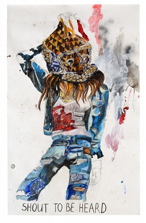 Charlotte Schleiffert, Shout to be heard, 2011 mixed technique on paper 238 x 151 cm | |||