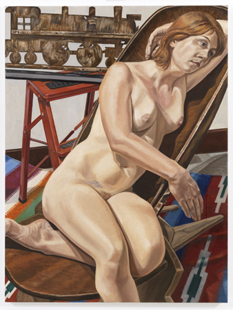 Philip Pearlstein, Model with Choochoo Weathervane and African Chair, 2010 Oil on canvas 48 x 36 inches, 121.9 x 91.4 cm | |||