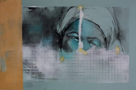 Nomthunzu Mashalaba. Charcoal and acrylic on cotton fabric. | |||