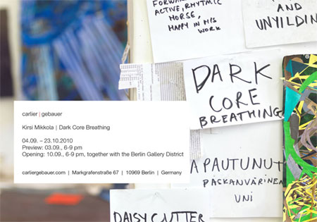 | carlier | gebauer: KIRSI MIKKOLA | Dark Core Breathing - 4 Sept 2010 to 23 Oct 2010 Current Exhibition | ||||