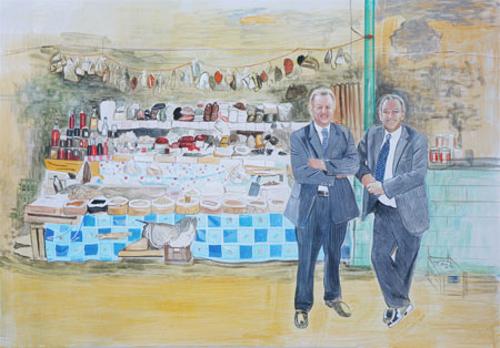 | JOHANNA KANDL The Missing Guardian Opening: March 17th, 2009, 7 - 9 p.m., together with the galleries Gabriele Senn, Georg Kargl and Engholm Engelhorn The artist will be present. Duration of the exhibition: March 18th - April 25th, 2009 JOHANNA KANDL lives and works in Vienna and Berlin. Selected Exhibitions: 2009 Snipers on the Market, Galerie Kisterem, Budapest (S); 2008 Bild fliegt, Galerie Patrick Ebensperger, Graz (S); Experimenta Folklore, Kunstverein Frankfurt (G); 2007 Volksgarten, Kunsthaus Graz (G); Geographie is Dead, Dortmunder Kunstverein (S); The Painting of Modern Life, Hayward Gallery, London (G); 2006 K�mpfer, Tr�umer & Co., Lentos Kunstmuseum Linz (S); Academie, Muhka, Antwerp (G); 2005 I Sell Paintings What Do You Sell?, Christine K�nig Galerie, Vienna, (S); 2004 You never know what will happen next, Galerie Six Friedrich Lisa Ungar, Munich; speaking in public, Art 35 Basel; 2003 speaking in public, 9. Cairo Biennale; K�mpfer f�r's Gl�ck, Kunstverein Ulm; 2002 K�mpfer f�r's Gl�ck, Christine K�nig Galerie, Vienna (S); Painting on the Move, Kunsthalle Basel (G); Galerie f�r Zeitgen�ssische Kunst, Leipzig (S); ungemalt, Sammlung Essl, Klosterneuburg (G); 2001 don't worry, be happy, Fotohof Salzburg (S); Your way to the top, project in cooperation with museum in progress, Vienna (S); 2000 DerDieDas FREMDE, Christine K�nig Galerie, Vienna (with Olga Chernysheva, Kara Walker); 1999 Secession, Vienna (S) G group exhibtion; S solo exhibition; Johanna Kandl's images draw their vexing effect and also at times their strange humor from the rift between the suggestive forces of global capitalism and a pathetic life reality. "I enjoy the fact that there is a rift between image and text." The painting The Missing Guardian after which the exhibition is named shows two men, both wearing business suits and in a very good mood, standing in front of a sales stand. Investors? Social descendants? New moderation? Other works address the artist's own past, depicting the fa�ade of her parents' paint shop on Br�nnerstrasse with signs advertising brands no longer existing today. The marginal small businesses make frequent appearances in her compositions with only the geographical coordinates changing: Viktor Adler market in Vienna, Belgrade, Baku, Ukraine, Bosnia, Karl-Marx Allee in Berlin. It is this world undergoing transformation that Johanna Kandl has captured in small sections of reality. Her works are anything but abstract which also holds true for the process of their production. The artist usually begins with photographs that she or her husband Helmut Kandl has made. The global archives of imagery, whether supplied from the Internet of from journals, are of no interest to her. Art is an avowal to the particular, to narrative fragments that cannot be arranged to form a large narration but rather stick in a state of the chthonic. The present-day economic crisis is playing into the hands of Johanna Kandl's modules of world interpretation in the sense that it retroactively adds a negative energy to the text-image combinations. Now it is not about a disproportionate relation between a super-capitalism that is triumphantly gesturing with its slogans and rhetorical expressions of pathos and its less capital-intensive marginal locations but about a universal dystopia. Capitalism is the first case of a blaming rather than repenting cult, as Walter Benjamin wrote in 1927 in a text that is still worth reading today: "The nature of the religious movement which is capitalism entails endurance right to the end, to the point where the universe has been taken over by that despair which is actually its secret hope. Capitalism is entirely without precedent, in that it is a religion which offers not the reform of existence but its complete destruction." (cited after Walter Benjamin) A large-format painting, very thin, almost painted in the grisaille style, depicts a huge number of sacral figures at a stand in Medujgorje. Next to it there is a piece on "Pyramid Games" and the "Pyramid" of Visoko in Bosnia where small tourism has been developing in recent years. A Bosnian living in exile disseminated the theory that the city hill was a pyramid - the oldest and largest in the world. One video shows the Piazza in Loreto, a Madonaro (street painter), Maltese nuns, a colorful Fiat sports car being blessed, a swarm of bees which on Pentecost Sunday punctually landed on a fountain figure and transformed it into a swarming, amorphous mass. For the video Br�nnerstra�e 165 in 2008 Johanna stepped again into the garden pond behind her family's shop. You see the family being filmed by her father with an 8 mm camera. Johanna Kandl's reports on the periphery of the world and on the end of an epoch are attempts to translate the world in which we live - whose visual substrates spin about us as serial images from the media - into a state of lasting imagery, epigrammatically. Painting has more plasticity than photography - and at the same time it should be recognizable in terms of its illusionistic character. It is a subtle tight rope walk which when successful is able to establish an ontology of instability. "Sometimes history catches up with you," as Johanna Kandl says. "Maybe my work assumes more clarity as a result of the crisis. It's different in any case." Thomas Mie�gang, Vienna 2009 | ||||