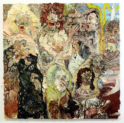 | FTW Connie DK Lane Ian Larson Curated by Jason Ramos Negativity, cynicism, bleakness, nihilism, solipsism, hopelessness, fatalism, mortality, entropy, decay, decline, misanthropy, anxiety, fear, despair, dread, apocalypse, existential nausea. Such dark themes found prior articulation within the cultural vanguard of Los Angeles. From the lashing, chaotic youth culture depicted in Penelope Spheeris’s The Decline of Western Civilization, to the hellish, conceptual landscape that was Paul Schimmel’s Helter Skelter exhibition, the work of Lane and Larson can be viewed both as contemporary carriers of similar notions and as direct heirs to specific strains of inquiry that inhabit and define the inspiring wasteland of LA. As fear and tumultuousness in the world grows, the merit of darker, more aesthetically challenging approaches and concepts emerge. Larson’s McCarthy-esque, nightmare bacchanals of paint and viscera are paired with Lane’s entropic artifacts of unsettling humanoid presence, opening up avenues of response to artists who, like all of us, must bear witness to the world into which we are thrust. Apocalyptic, carnal, confrontational visions and bloated, hulking ur-figures of necrotic vanitas are aesthetically and conceptually expounded upon, emerging in a state of vivid subtext and arresting presence — fuck the world, for the win. Opening reception Saturday, January 10th, 2015, 7-10 pm On view until February 8th Gallery hours San & Sun 1-5 pm | ||||